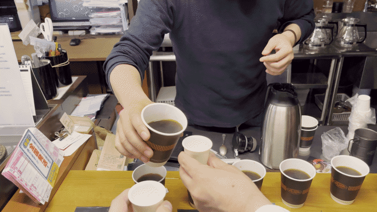 試飲会の珈琲は社長直々に抽出いただいたのですが、抽出方法がとても斬新でした。サザコーヒーのHPでも掲載されおりますので、詳細はそちらをご視聴頂ければと思いますが、とても簡単です。