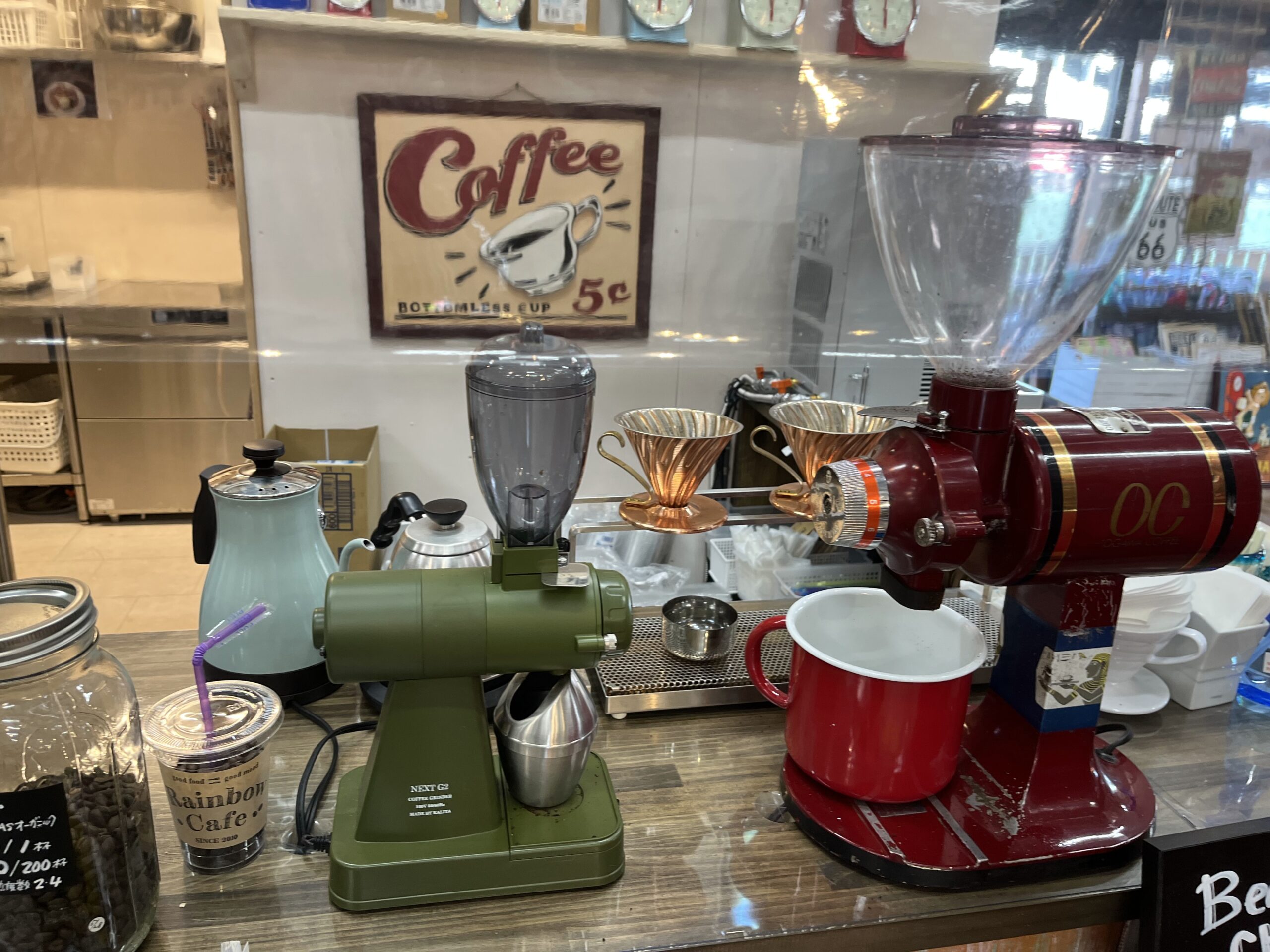 もちろん珈琲の取り扱いもあります。珈琲屋さんと言えば山小屋感と言いますか、白い壁に木材のアクセントがあるような” モダンレトロ風 “な雰囲気を勝手に想像していますが、ハワイアンな感じの珈琲屋さんは珍しいと思いました(田舎育ちですみません)。店内にいたタイミングで丁度外国人のグループがいたこともあって” 異国感 “がすごかったです。