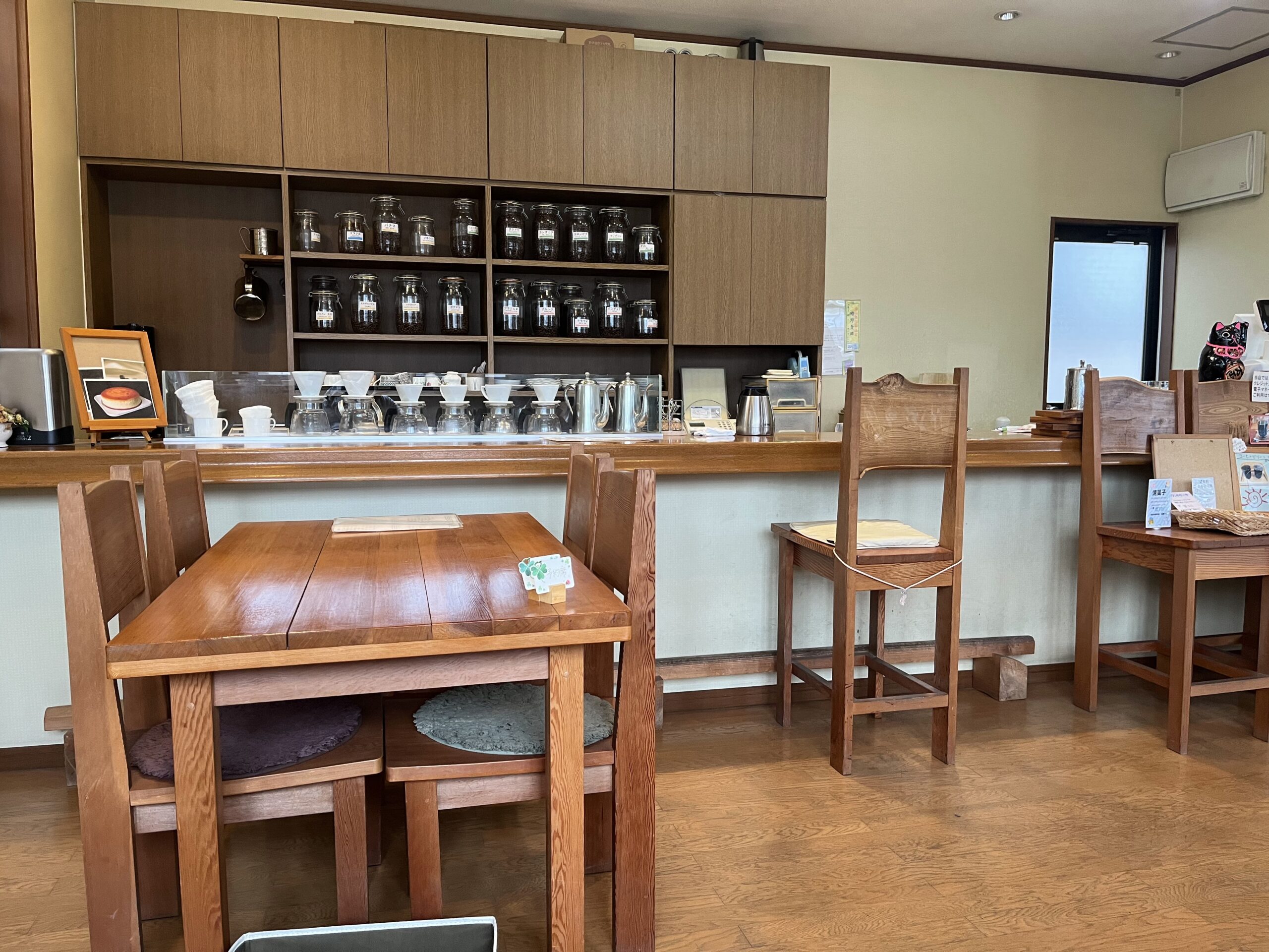 レイアウトは4人座れるテーブルが3席(内1席は予約席になっておりました。)とカウンター席があります。率直な感想は「結構席が少ないな」と思いました。Matoriが訪問した際も数組来店されておりましたので、場合によっては混雑で席に座れないということがあるかもしれません。癒される素敵な空間ですが、混雑時は読書やおしゃべり等の長居は難しそうです。窓際には置き人形や植物、珈琲道具が装飾されていて昔ながらの喫茶店という印象を受けました。こういった雰囲気がお好きな方も多いですよね。Matoriさんは大好きです(笑)。