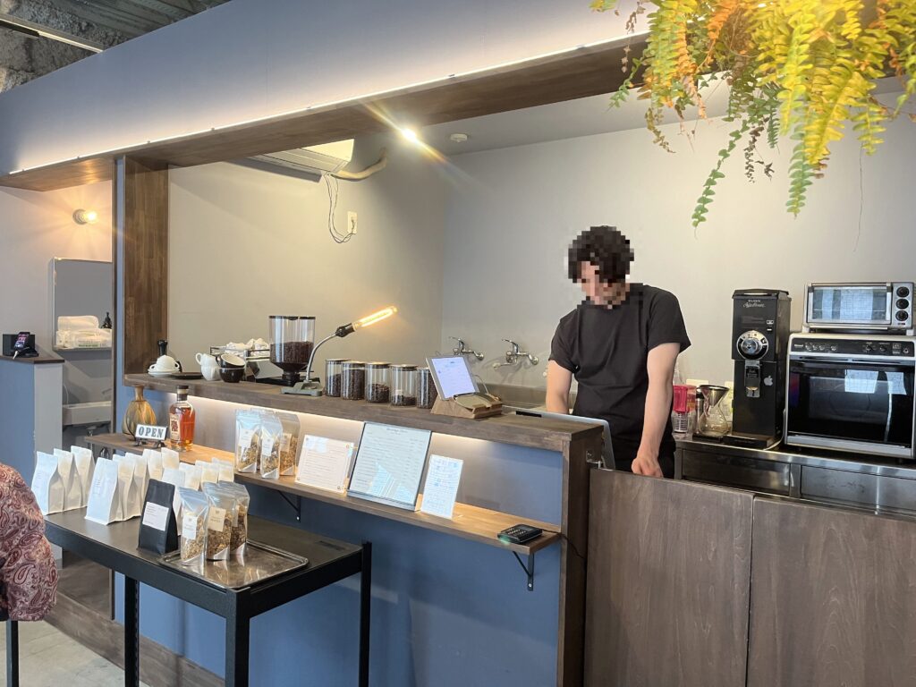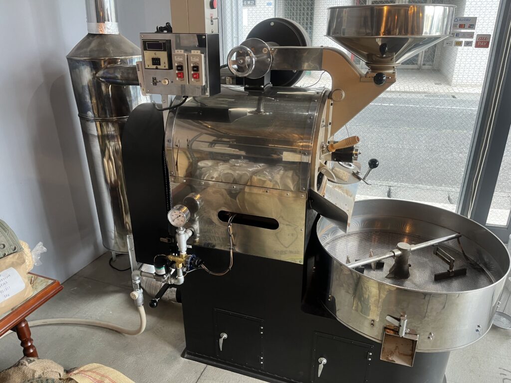 入口には焙煎機も設置されていました。焙煎室と兼用でしょうか??私は見える位置に焙煎機があるお店の方が” 自家焙煎感 “があって好きです。( 聞いてない )